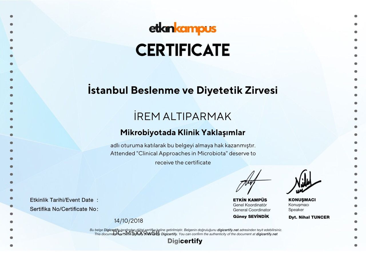 İrem hanım harika bir diyetisyen, hatta bir diyetisyenden öte diyebilirim, çocuklarımla alakalı kilo vermek amacıyla kendisinden destek alıyoruz, çocuklar ilk önce babasının zorlamasıyla istemeyerek gitmişti, şimdi isteyerek ve severek gidiyorlar, çok memnunuz, ilk gittiğimizde fark ettim ki kendisi danışanına şunu yeme bunu yeme gibisinden davranmıyor, ne yemek istersin diye soruyor, iki çocuğumu da kendisine götürüyorum, yaklaşık 3 ay oldu, büyük oğlum 7 kilo, küçük oğlum 6 kilo verdi, tabi bu süreçte kaçamakları da oldu, listelere birebir uysalar daha verimli olurdu ama tam olarak uymadıkları halde olumlu sonuç aldılar, kendisi bu dönemde güzel sağlıklı yemek tarifleri de veriyor bizi her anlamda bilgilendiriyor, mükemmel bir uzman, gayet memnunuz.